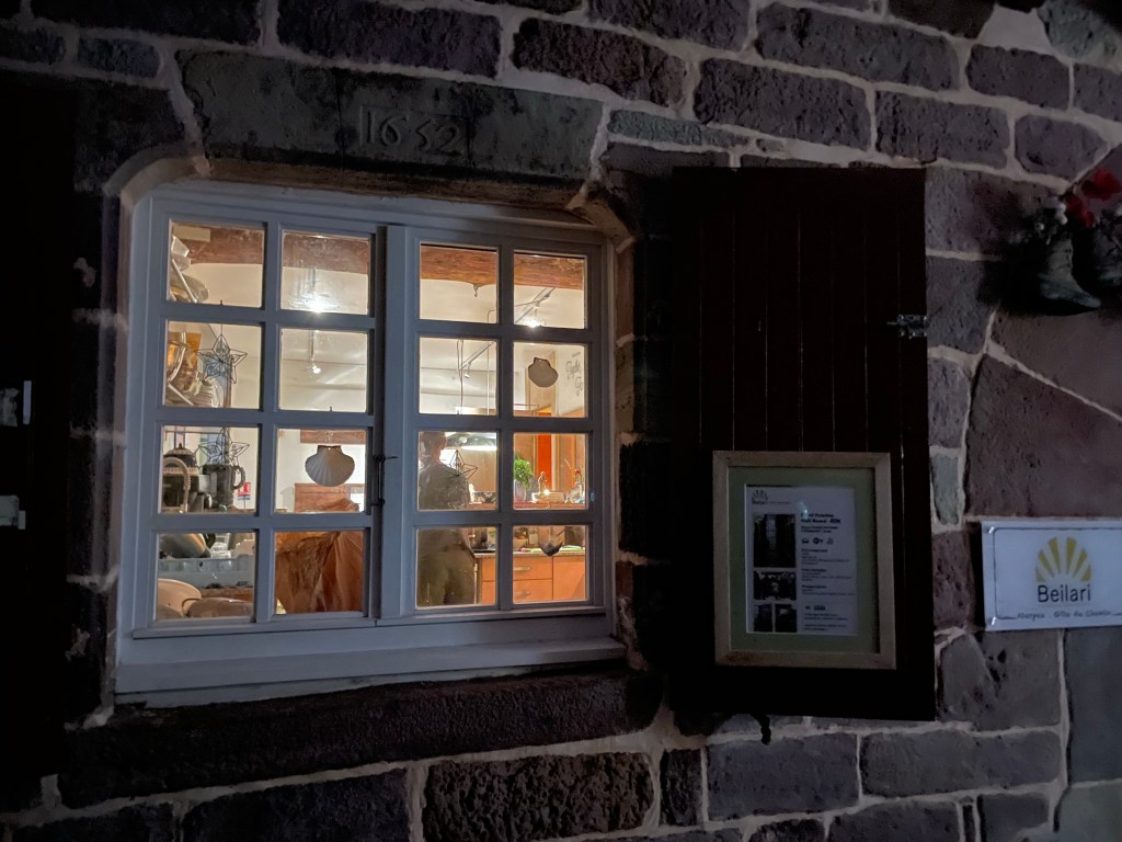 The path continued constantly upward for nearly five of the seven hours I walked that day. Once it flattened out, I realized I actually preferred going uphill because it had been keeping me warm (I was soaked to the bones wearing a thin hiking shirt and shorts, and the temperature was around 12C, and the wind was no joke. I made poor choices regarding my outfit that morning but kept in good spirits all day nonetheless). By the time I got to the steep descent into Roncesvalles, the sun was peeking out in places, and the clouds cleared such that it was sunny and considerably warmer at the monastery albergue where I stayed.