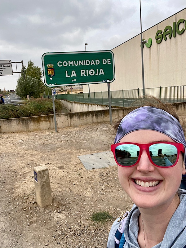 I covered the seven miles from Viana to Logroño in record time, not listening to my past self and racing ahead at a sub-20 pace because I wanted to be done for the day. Just outside the city, I crossed from Navarra into La Rioja, meaning I’d walked across an entire Spanish province! That brought a great feeling of progress. Of course, when I turned around mid-race to get a selfie with the La Rioja sign, my quads nearly buckled from the funny movement. I spent the afternoon stretching on my top bunk, and resolved to take it easier the next day.