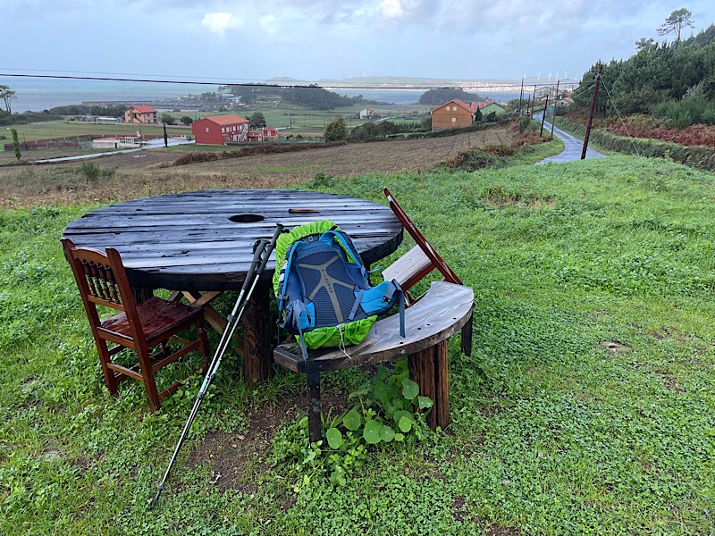- Seeing “moderate weather warnings” for wind and rain, but low likelihood of thunderstorms, so setting out before dawn while some older pilgrims were looking for the bus schedule